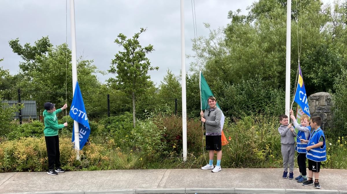 Well done to all the Active Flag committee who helped raise our Active flag on Thursday 20th June. We also raised our new Irish flag and our cinéaltas flag. There was great excitement.